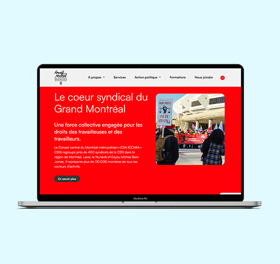 Nous avons accompagné Upperkut dans la refonte complète du site Web du CCMM–CSN à l’aide d’une solution WordPress sur mesure, pensée pour mieux refléter leur mission syndicale et faciliter la communication avec leurs membres. L’architecture du site a été repensée pour simplifier l’accès aux informations clés, aux publications et aux actualités. Nous avons également mis en place des outils personnalisés permettant une gestion autonome du contenu, tout en assurant une conformité aux standards d’accessibilité et une navigation optimisée sur tous les appareils.