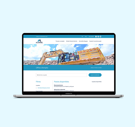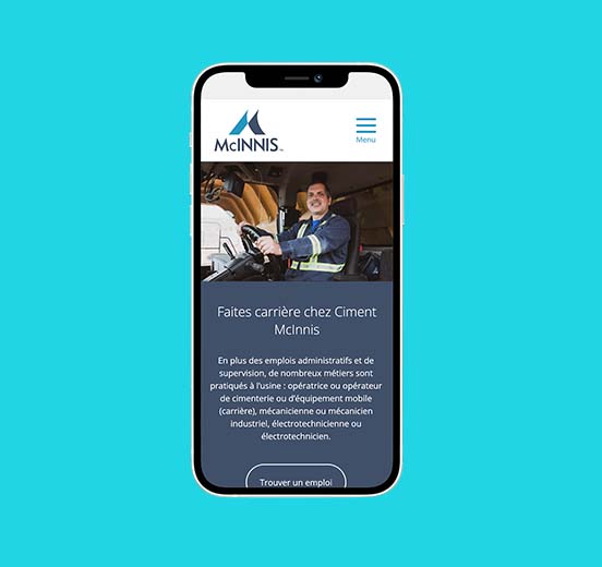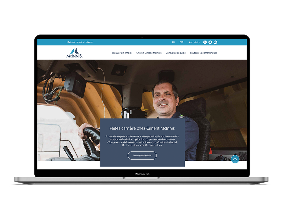 Jolifish a travaillé au développement du nouveau microsite dédié aux emplois de chez Ciment McInnis. Vous y trouverez les différents postes disponibles, et la possibilité de postuler en ligne. Vous pourrez également y lire les différents engagements de l’entreprise dans la communauté. Le principal objectif était d’aider au recrutement en faisant la promotion de la qualité de l’environnement de travail chez Ciment McInnis.