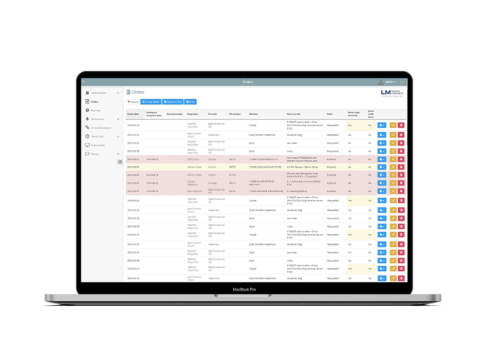 Les logiciels développés (LM Eval performance, LM Maintenance et LM Toolcrib, Inspection List) permettent notamment :